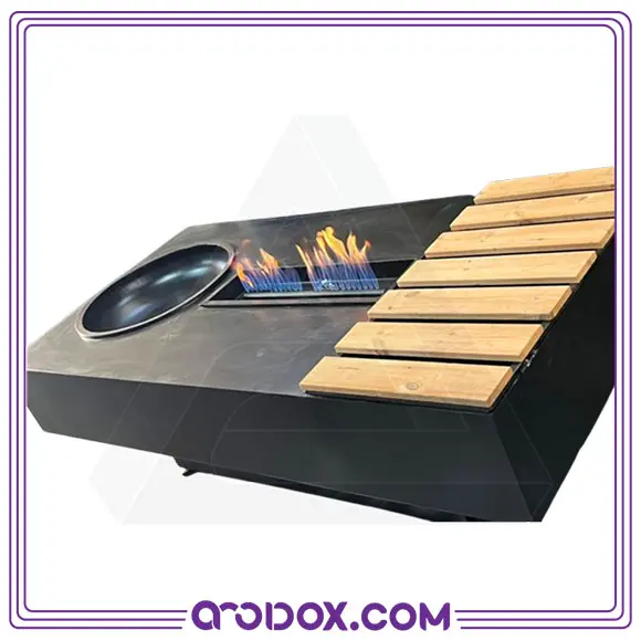 یکی از ویژگیهای منحصربهفرد این میز، دوگانهبودن سیستم گرمایشی آن است. در یک سمت میز، میتوانید از گرمای دلپذیر هیزم لذت ببرید و در سمت دیگر، گرمای گاز را تجربه کنید. این طراحی دوطرفه به شما امکان میدهد بسته به نیاز و شرایط محیط، انتخابی متناسب داشته باشید. 😍🔥